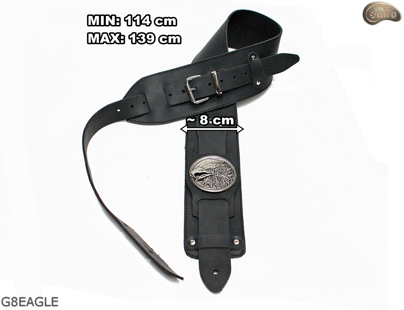 Uniwersalny pas do gitary G8 EAGLE został wykonany z wysokiej jakości grubej skóry naturalnej czarnej.